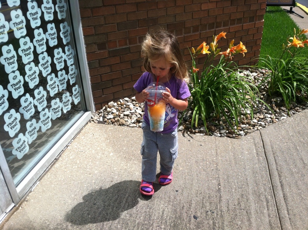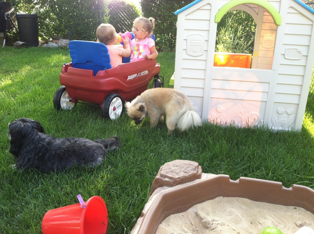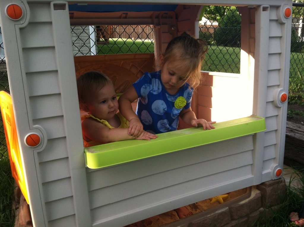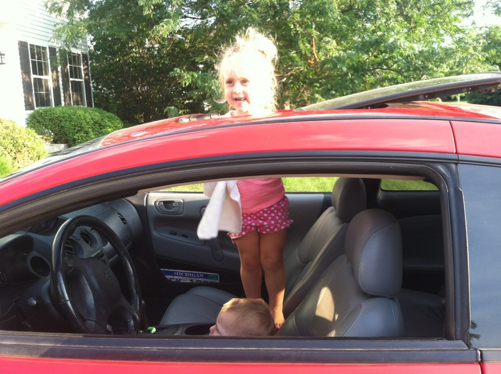 Vivian enjoying the drivers seat of Jake’s car while Adelle stands with her head out the sun roof.