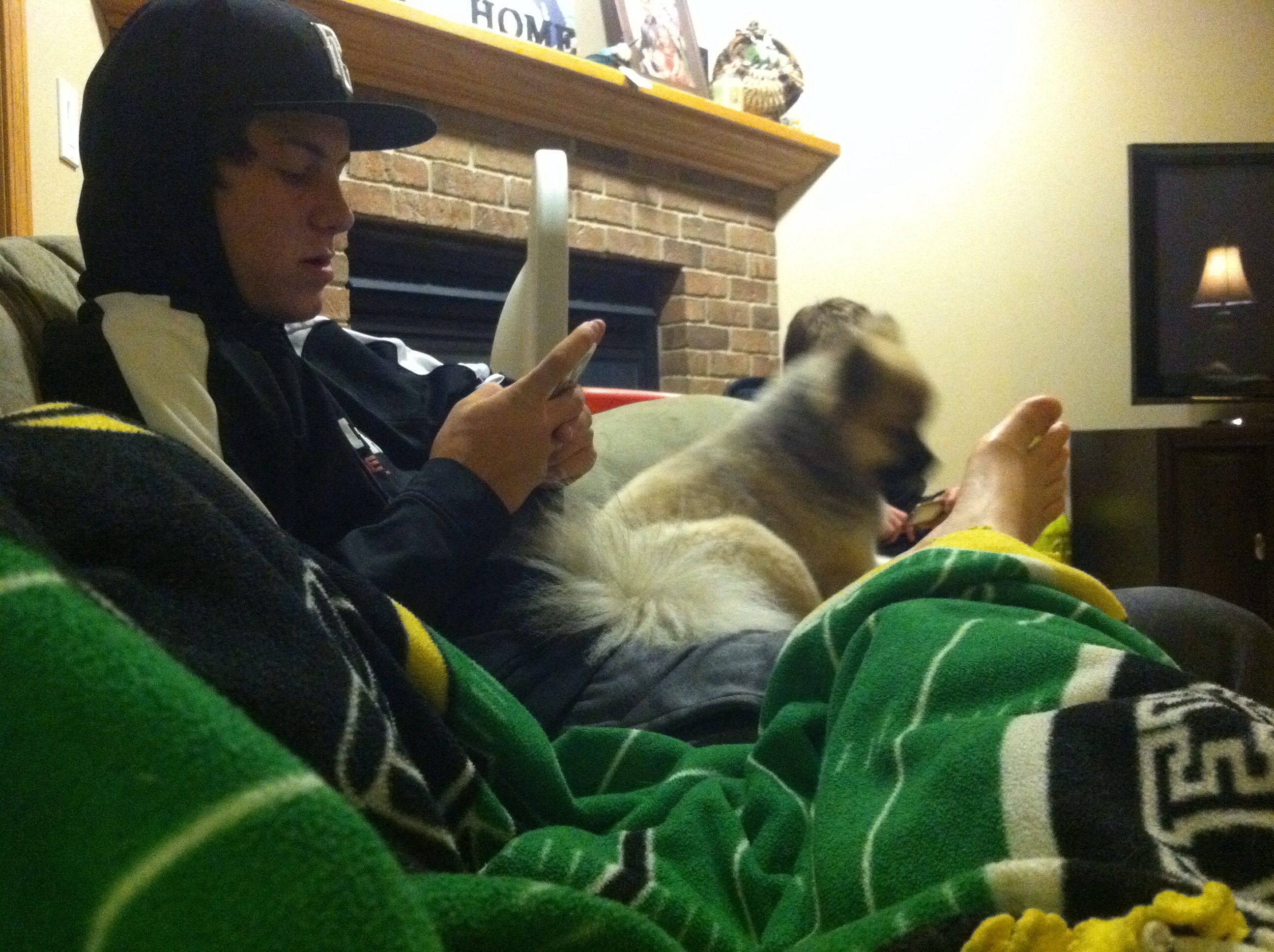 Jake hanging out with Iowa football star Marvin McNutt. Pretty cool