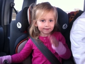 Vivian enjoying the drivers seat of Jake’s car while Adelle stands with her head out the sun roof.